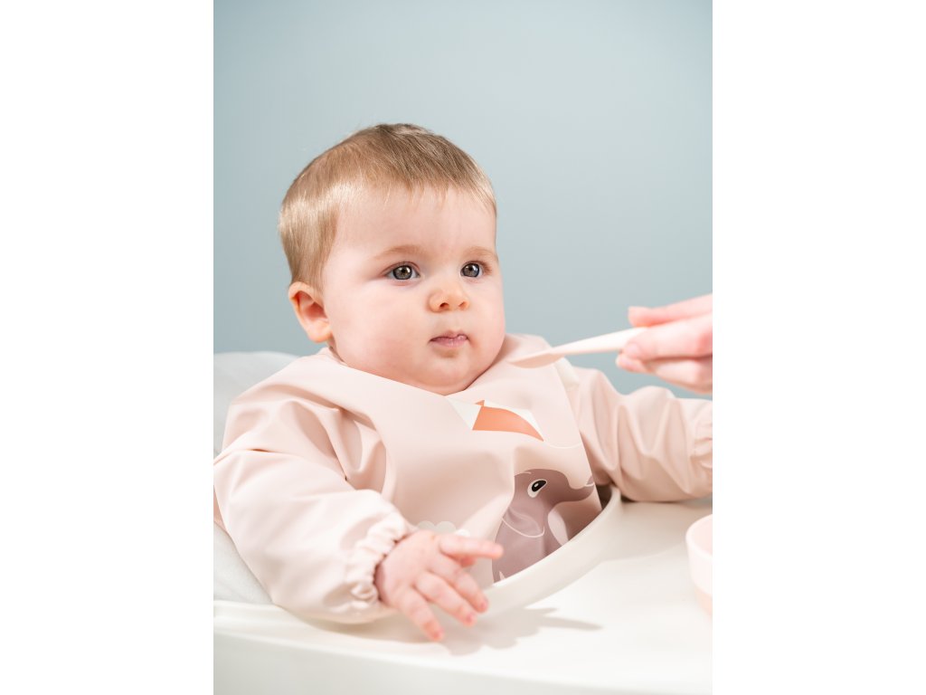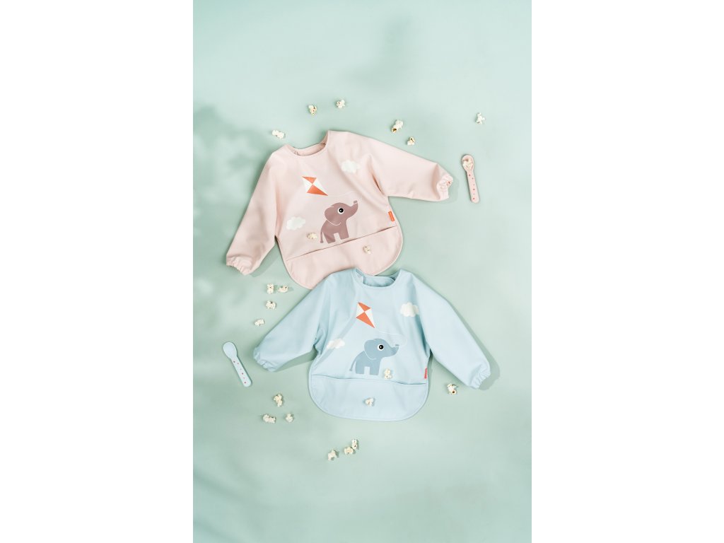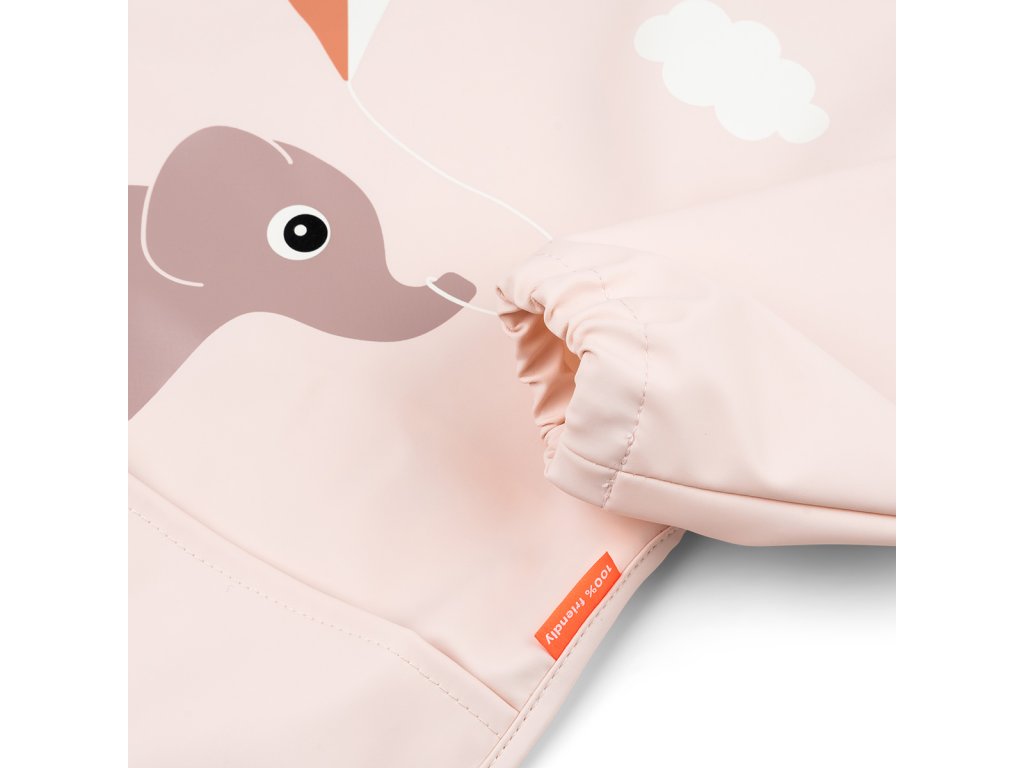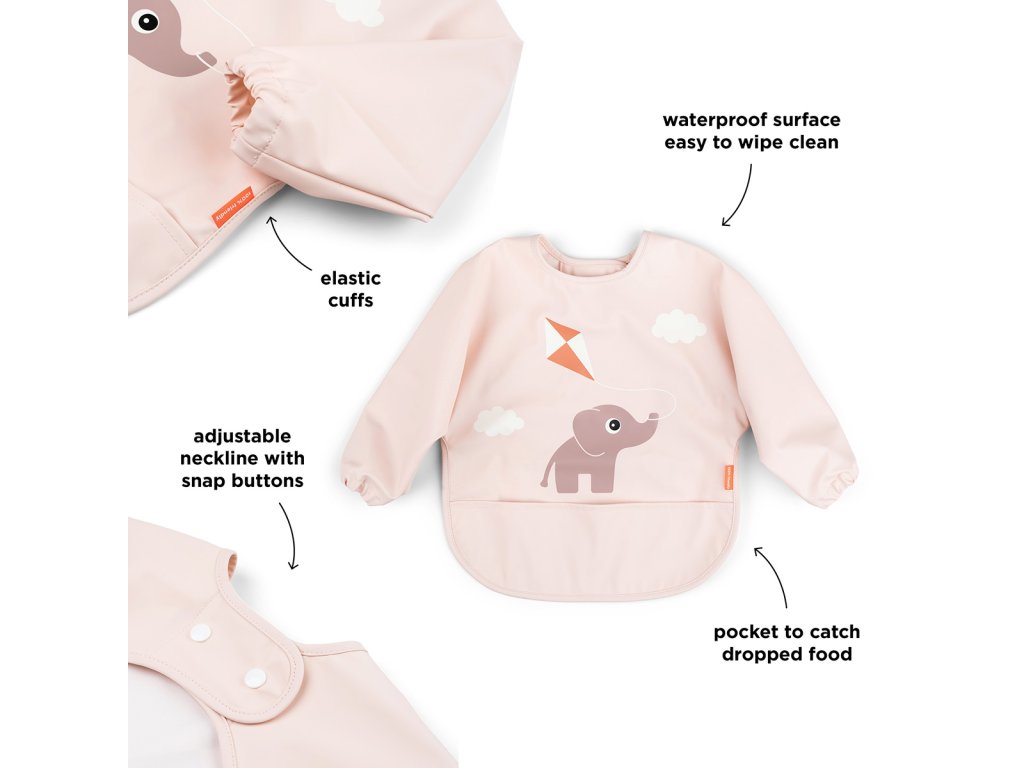 Tento roztomilý bryndáček hezké barvy má roztomilý motiv Elphee pouštějícího draka. Bryndáček zajišťuje čistotu svým voděodolným povrchem a chrání oblečení před politím a nepořádkem. Rukávy udržují oblečení vašeho dítěte v bezpečí.