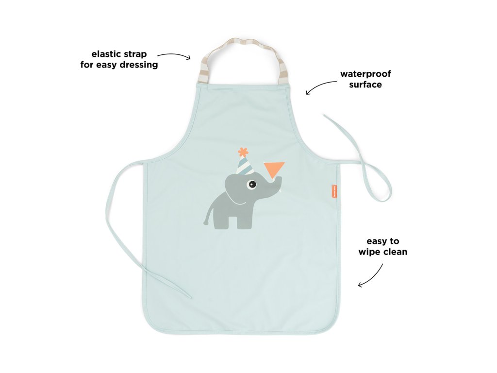 Dětská zástěra s motivem Elphee. Voděodolný povrch usnadňuje čištění a chrání oblečení vašeho dítěte. Elastická smyčka na krk umožňuje batolatům, aby si zástěru nasadily a sundaly samy. Vhodné pro děti různého věku Ideální na pečení, vaření, rodinné večeře nebo kreativní aktivity.