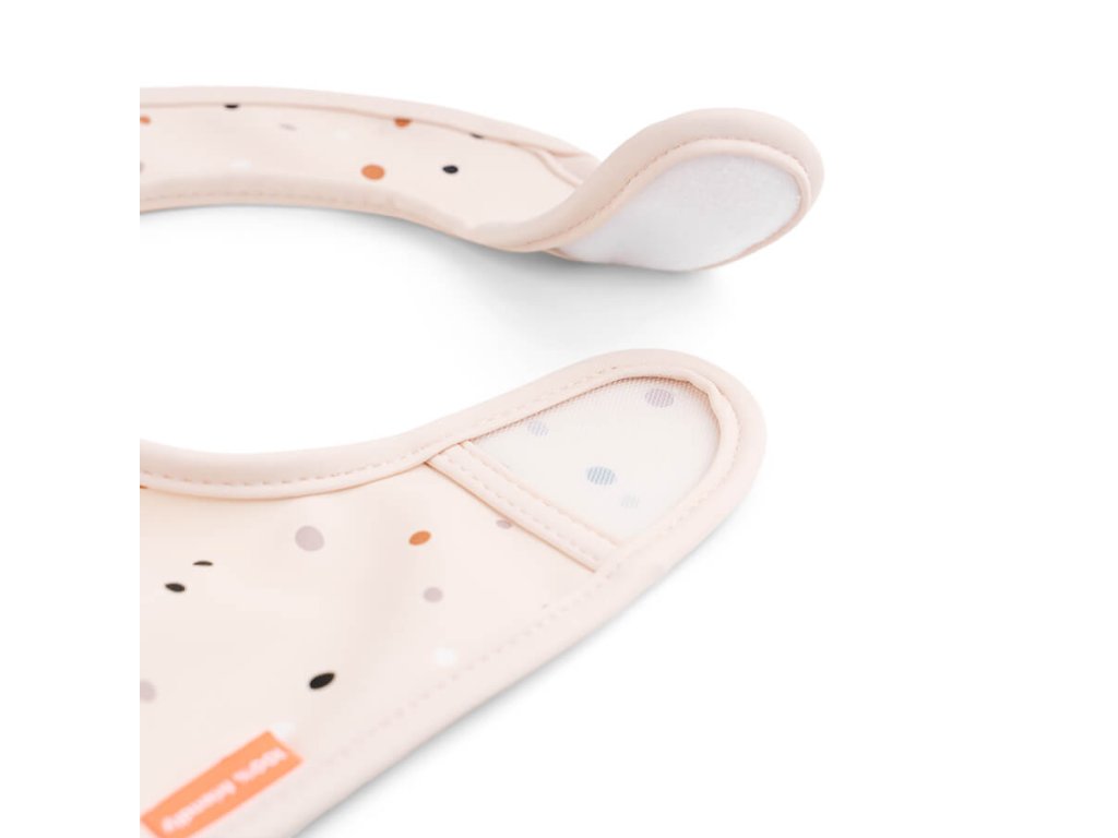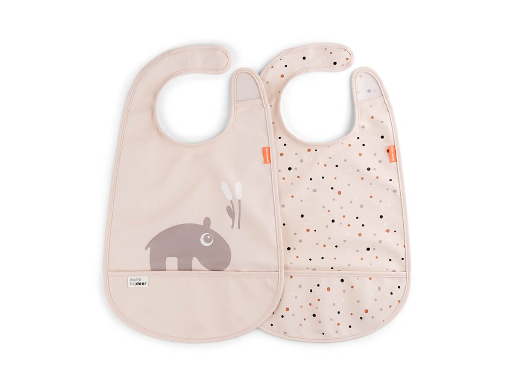 S touto praktickou sadou dvou voděodolných bryndáků, které lze snadno otřít, a s chytrou kapsou na zachycení padajícího jídla, je Váš deer kamarád připraven udělat při jídle méně nepořádku. Tento set Vám ušetří spoustu času při úklidu. Měkké bryndáčky mají zapínání na suchý zip, díky kterému se velmi snadno oblékají a svlékají. Roztomilý set v jemném pudrovém odstínu, jeden zdobí Ozzo a vodní rostlina a druhý je pokrytý šťastnými tečkami v jemných barvách.