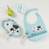 Kravička Dotti vykukuje z praktického silikonového bryndáčku - připravený zachytit každý drobeček. Bryndáček je voděodolný, snadno se otírá. Kapsa zachytí padající jídlo a ušetří vám spoustu času při úklidu.