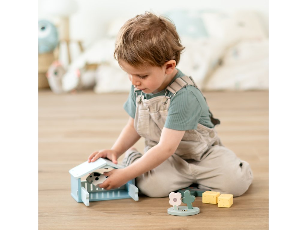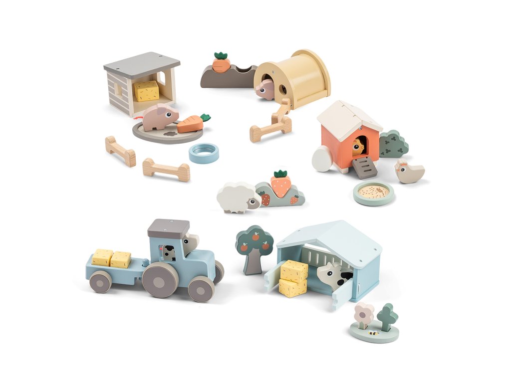 Malá herní sada Tiny Farm podporuje rané vyprávění a rozvoj řeči. Trénuje jemnou motoriku a koordinaci ruka-oko. Sada je navržena pro malé ručičky s velkou fantazií. Lze kombinovat a rozšiřovat s dalšími sadami Tiny farm.