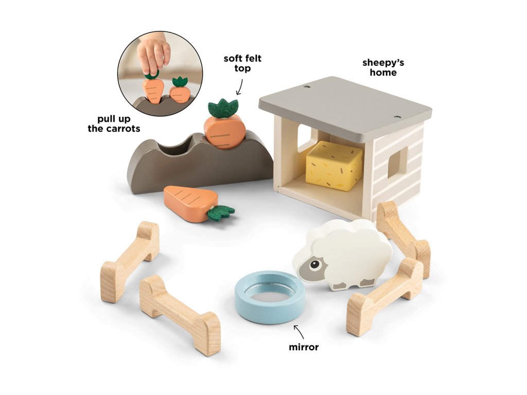 Malá herní sada Tiny Farm podporuje rané vyprávění a rozvoj řeči. Trénuje jemnou motoriku a koordinaci ruka-oko. Sada je navržena pro malé ručičky s velkou fantazií. Lze kombinovat a rozšiřovat s dalšími sadami Tiny farm.