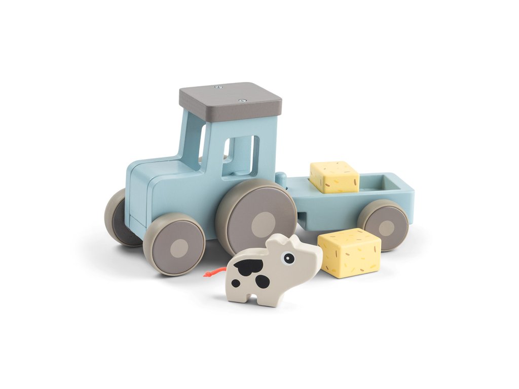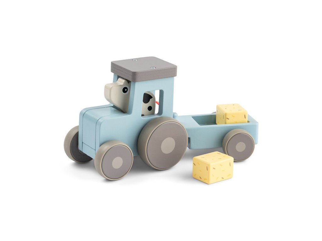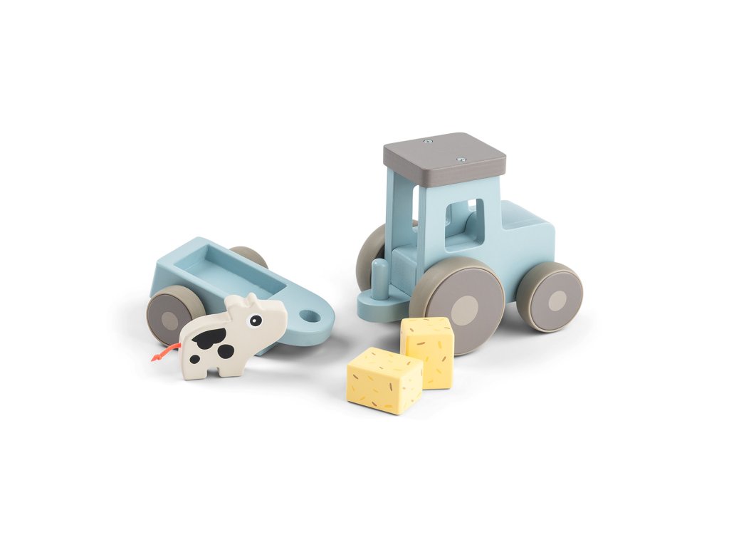 Malý dřevěný traktor trénuje jemnou motoriku uchopením, tlačením a nakládáním balíků sena. Navrženo pro malé ručičky s velkou fantazií. Lze kombinovat a rozšiřovat s dalšími stavebnicemi Tiny farm. Vyrobeno ze dřeva ze zodpovědných zdrojů a bezpečné barvy na vodní bázi. Přívěs lze odpojit pro větší zábavu.