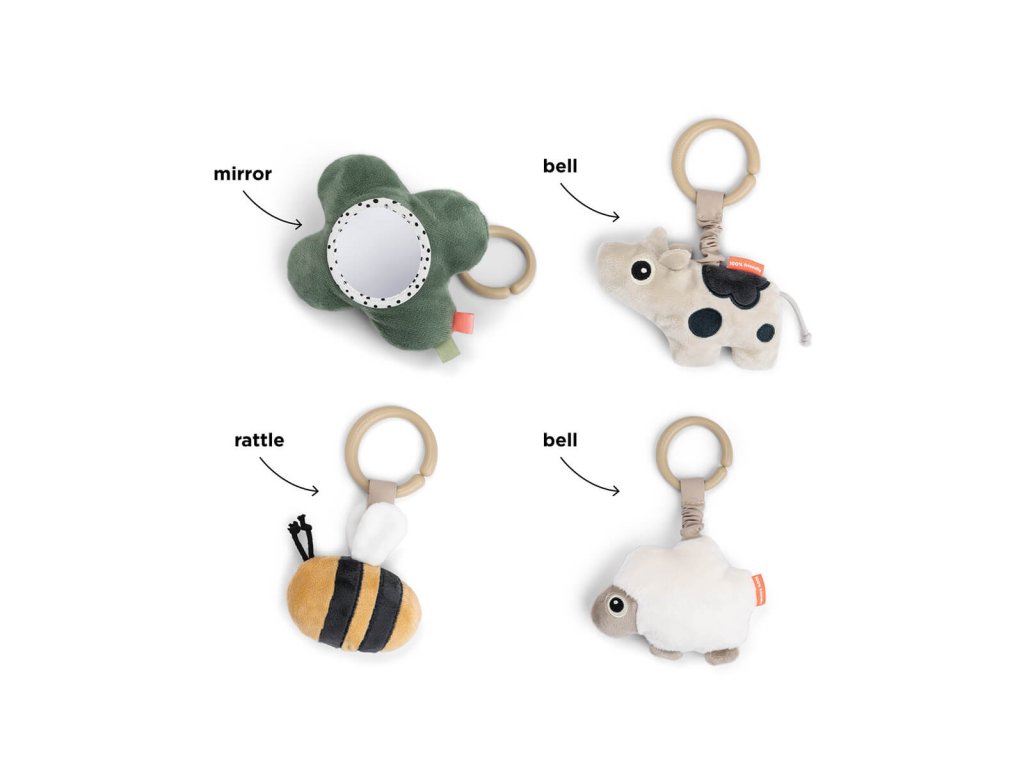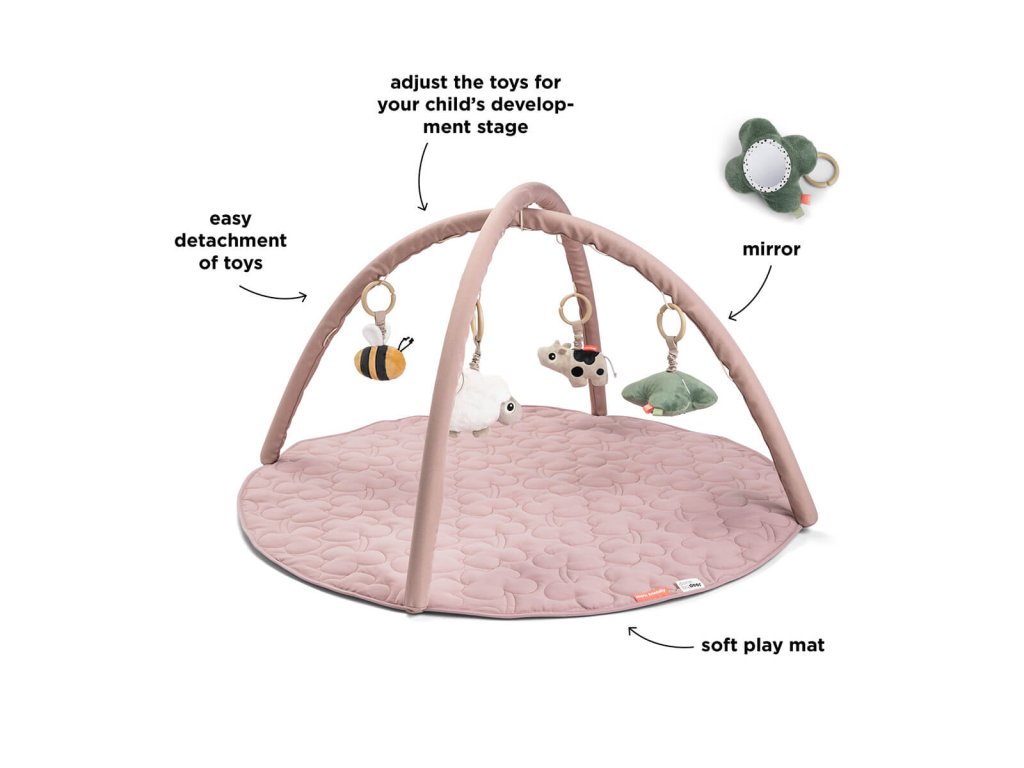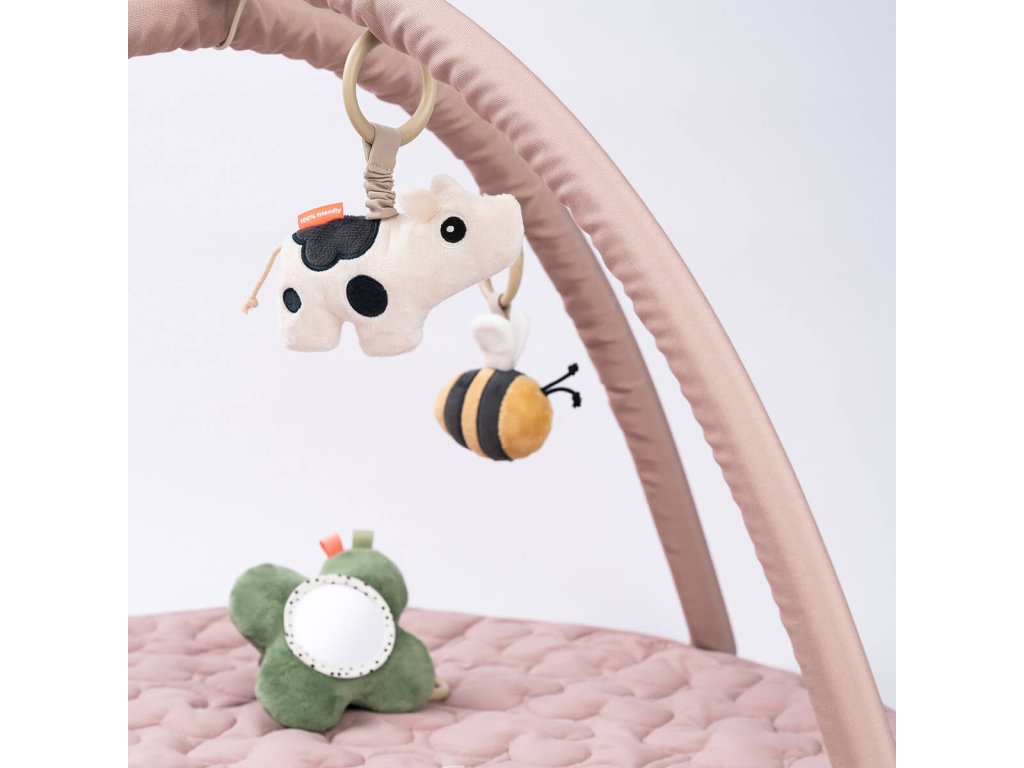 Jednobarevná aktivní hrací podložka s útulným prošíváním včetně čtyř závěsných hraček, určená pro pohybovou aktivitu Vašich nejmenších. Hračky můžete zavěsit do 13 různých pozic na hrací oblouky. Kravička Dotti , ovečka Sheepy, včelka a v zrcátku může Vaše miminko pozorovat svou tvářičku. Vše pro stimulaci Vašeho dítěte.