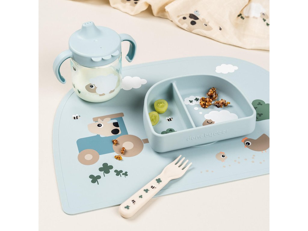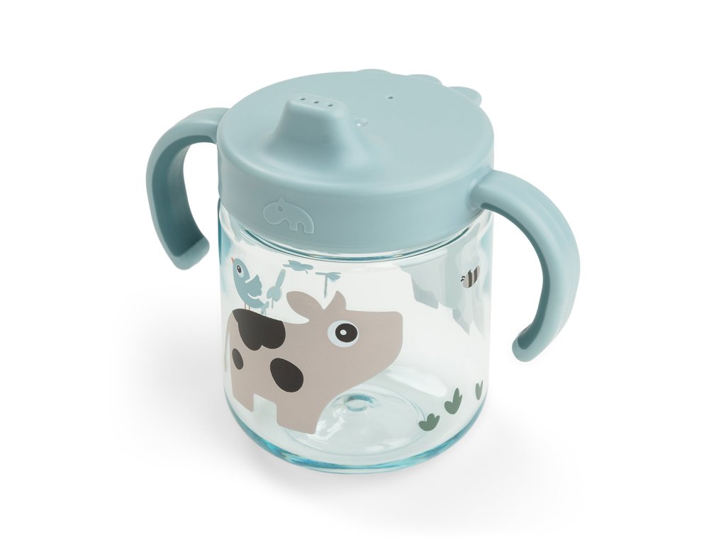 Dětský hrneček s pítkem Tiny Farm - modrý