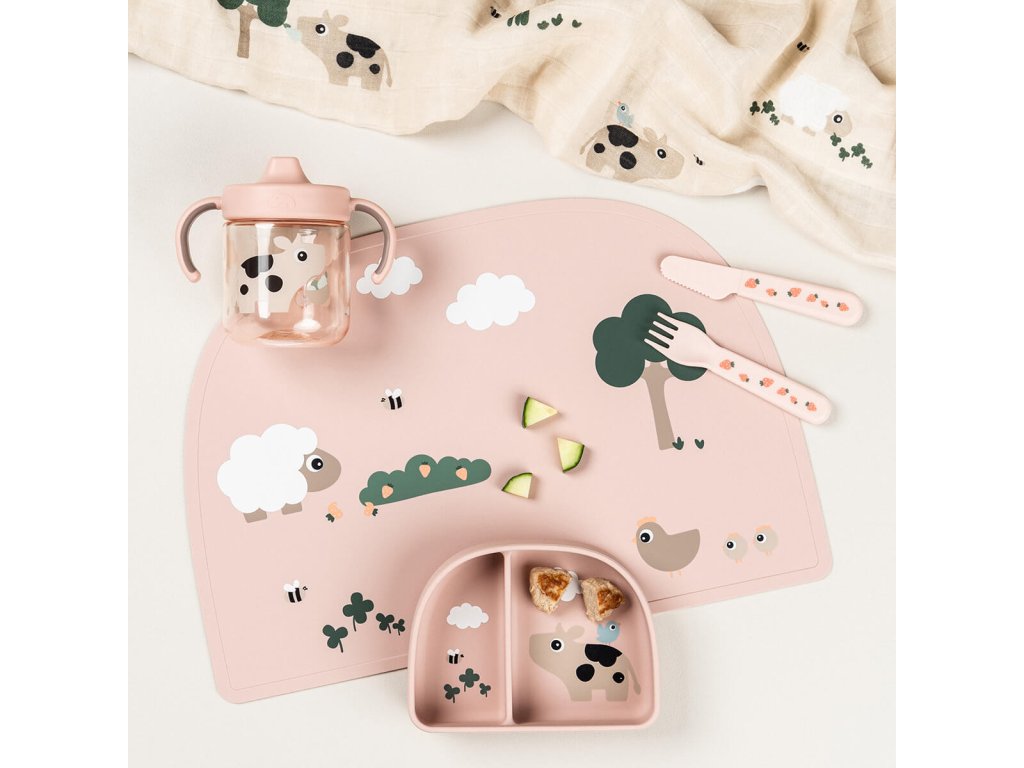 Dětský hrneček s pítkem Tiny Farm - růžový