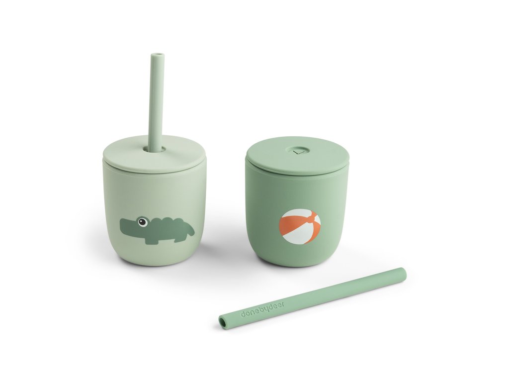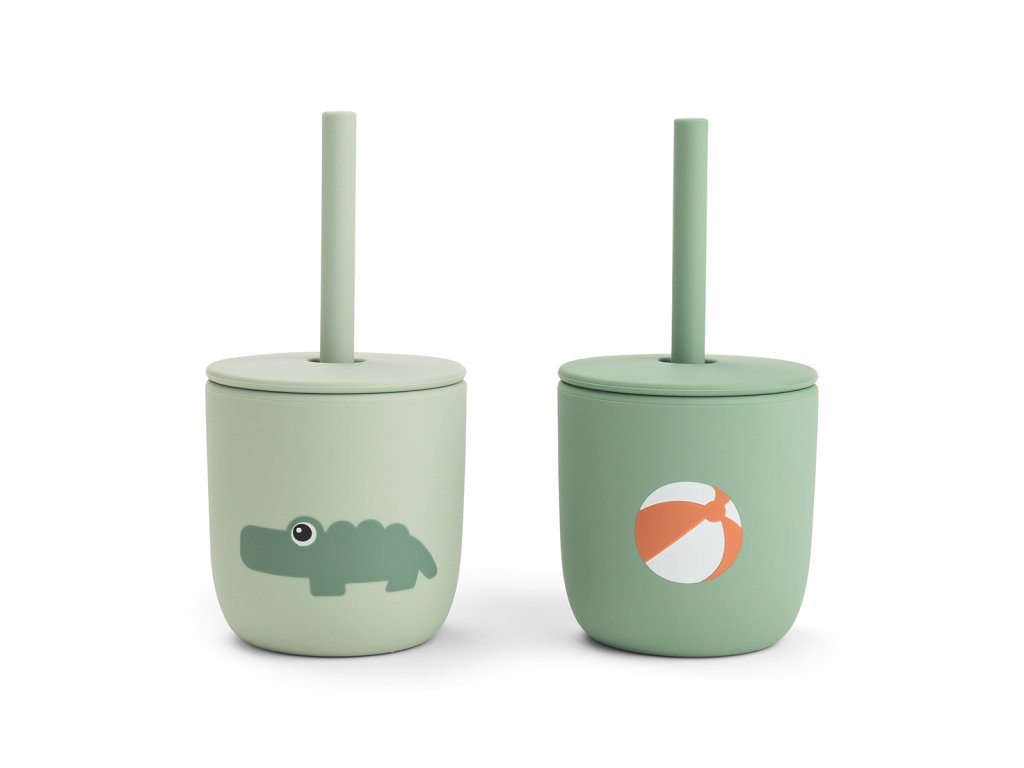 Set 2 hrnečků s brčkem Playground - zelené