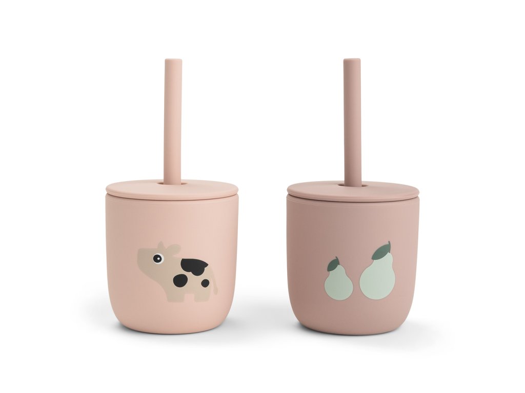 Set 2 hrnečků s brčkem Tiny farm - růžové