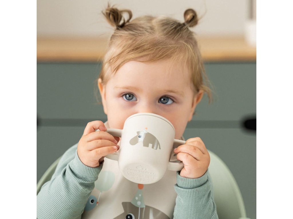 Hrneček s pítkem je perfektní hrnek 2 v 1 pro procvičování prvních doušků. Pítko zabraňuje rozlití tekutiny. Když je Vaše děťátko připraveno, pítko se může sundat a šálek se dvěma rukojeťmi zajistí pevné uchopení. Roztomilý hrneček je vyroben z potravinářského silikonu, díky kterému je nerozbitný, nepropustný a snadno uchopitelný. Skvělý doplněk na doma, na cesty, auta nebo na zábavný výlet na hřiště.