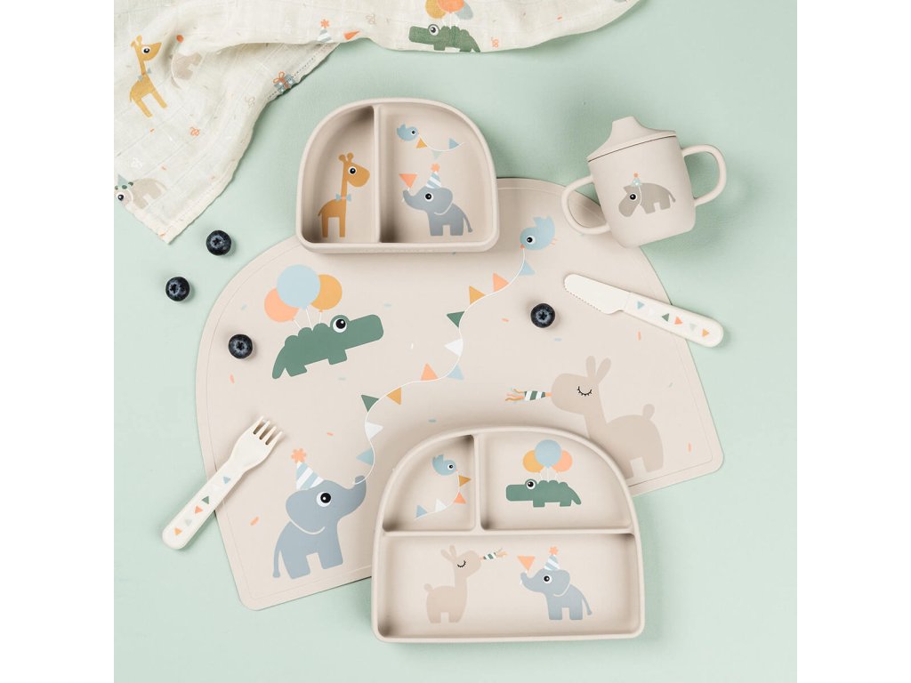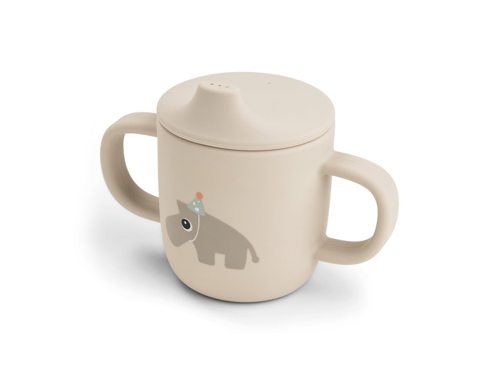 Silikonový hrneček s pítkem Celebration - pískový