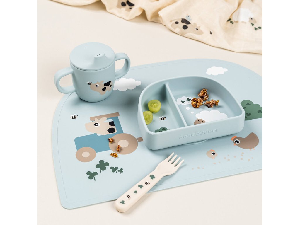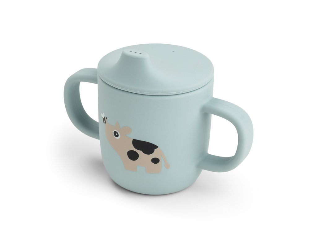 Silikonový hrneček s pítkem Tiny farm - modrý