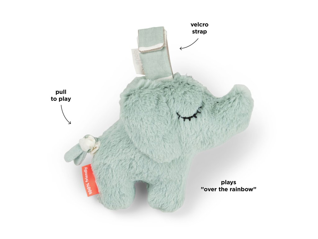 Měkká hudební hračka Elphee zabaví vaše dítě při hraní a zajistí, aby se vaše dítě cítilo bezpečně a klidně, když je čas si zdřímnout. Nechte veselého sloníka Elphee ukolébat vaše dítě ke spánku nebo mu navodit příjemnou náladu za zvuku „Over the Rainbow“. Měkká hudební hračka se snadno připevní kamkoli pomocí praktického zapínání na suchý zip.