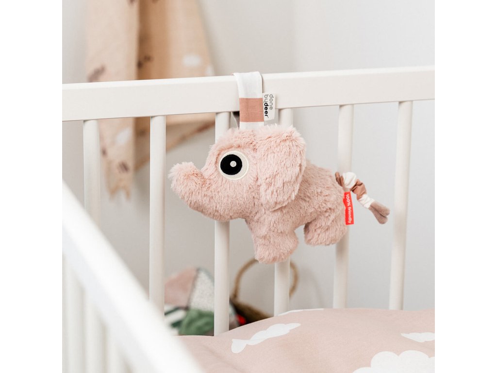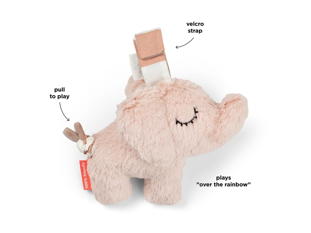 Měkká hudební hračka Elphee zabaví vaše dítě při hraní a zajistí, aby se vaše dítě cítilo bezpečně a klidně, když je čas si zdřímnout. Nechte veselého sloníka Elphee ukolébat vaše dítě ke spánku nebo mu navodit příjemnou náladu za zvuku „Over the Rainbow“. Měkká hudební hračka se snadno připevní kamkoli pomocí praktického zapínání na suchý zip.