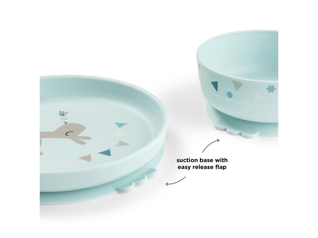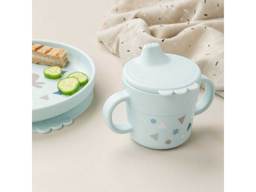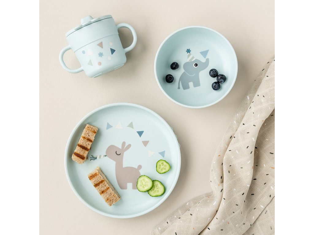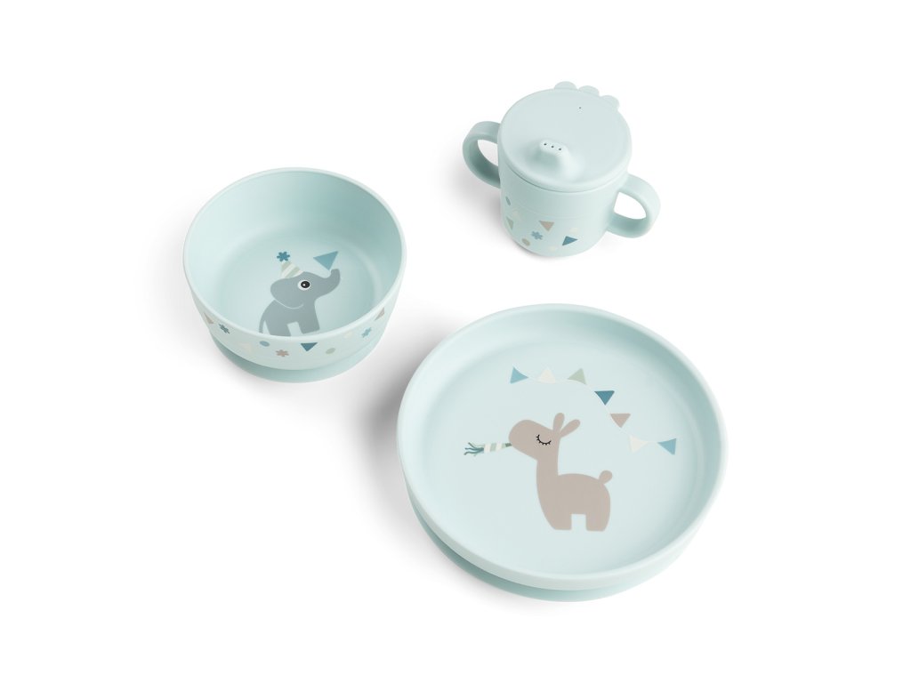 Malé děti si pochutnají na jakémkoli jídle podávaném v této roztomilé jídelní sadě s hravým motivem. Jeho praktická silikonová základna udržuje misku i talířek na místě. Hrneček má praktické pítko, které lze jednoduše sundat. První jídelní set je navržen pro každodenní život s dětmi a je vhodný do myčky a mikrovlnné trouby. Jakmile sada splní svůj účel prostřednictvím bezpočtu rodinných večeří, lze ji roztřídit jako plast a recyklovat na nové produkty každodenního života. Sadu zdobí hravé potisky jeleních kamarádů.