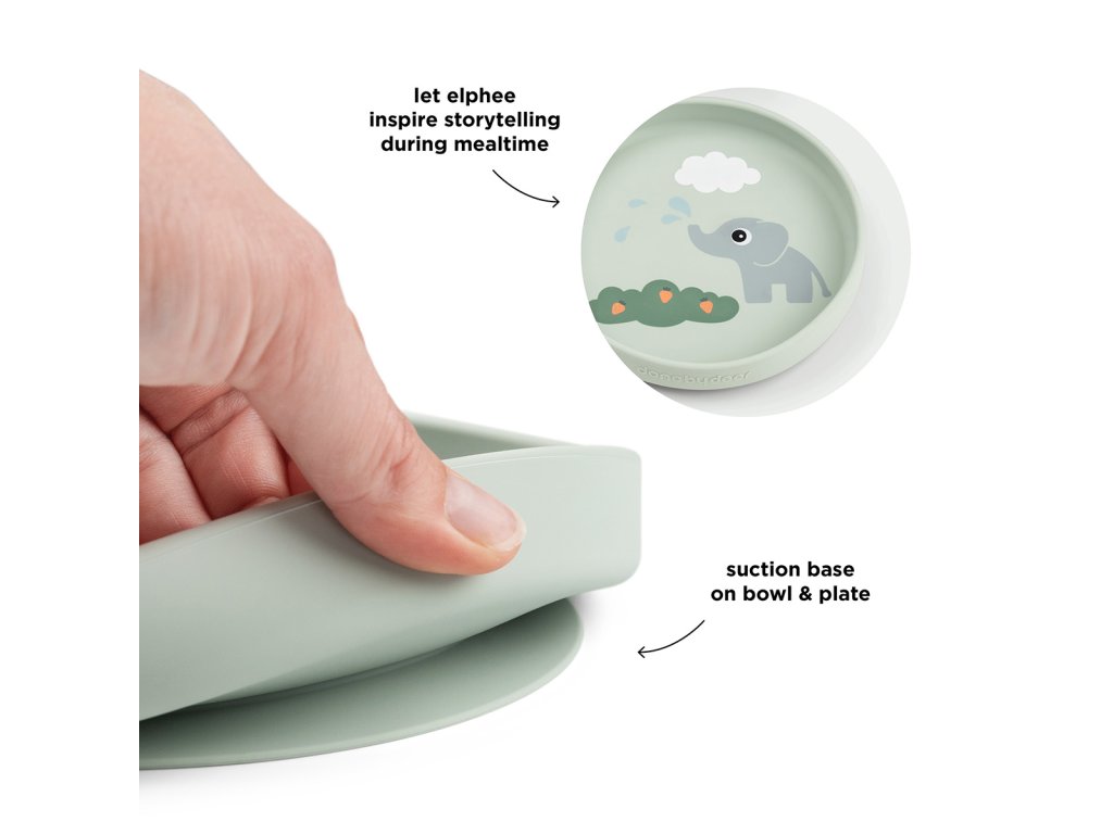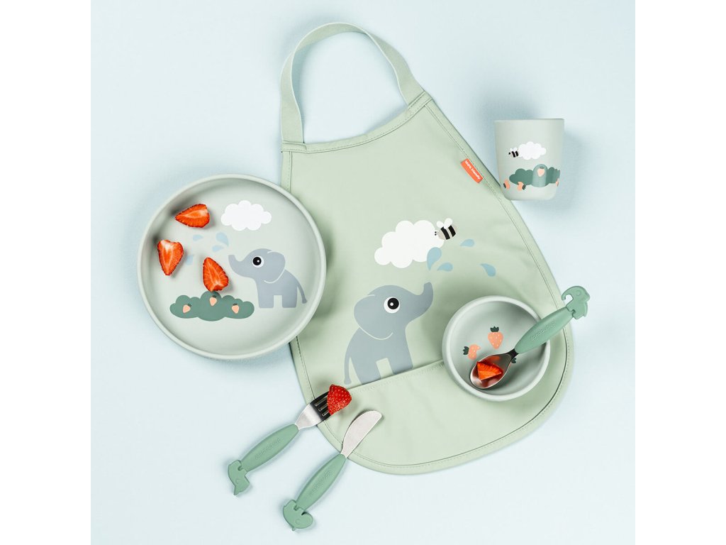 Silikonový jídelní set Stick & Stay Elphee - zelený