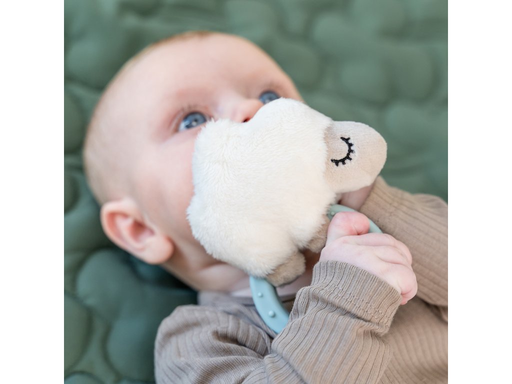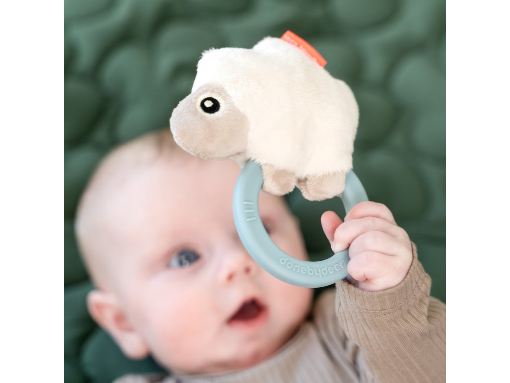 Roztomilé smyslové chrastítko ovečka Sheepy s kousacím kroužkem je dobrým společníkem pro Vaše nejmenší s bolavými dásněmi. Sladká Sheepy zabaví Vaše miminko všemi svými smyslovými funkcemi. Chrastítko má roztomilý zvuk chrastění, různé textury k prozkoumání. Stimulujte smysly svého dítěte pomocí těchto funkcí a pomozte zklidnit svědění dásní. Nechte své děťátko hrát si s tímto senzorickým chrastítkem s Sheepy a uvidíte, jak Vaše děťátko prozkoumá zábavné prvky.