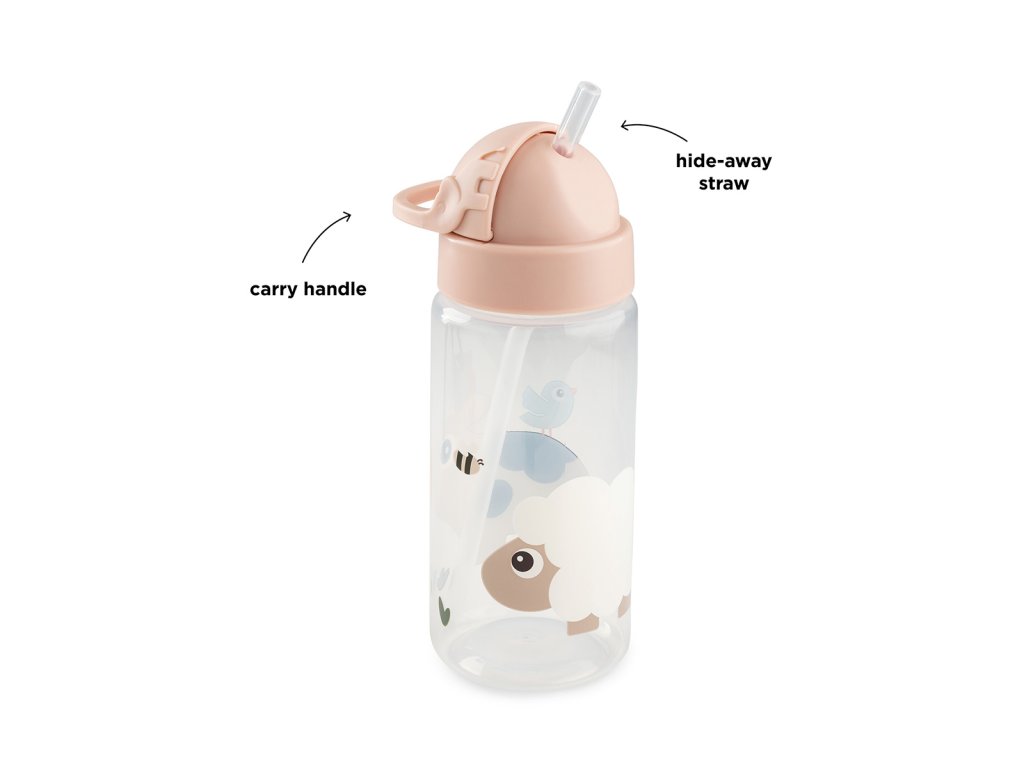 Dětská láhev s brčkem Tiny Farm 350 ml - růžová