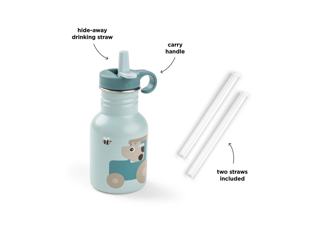 Dětská nerezová láhev Tiny Farm 350 ml - modrá
