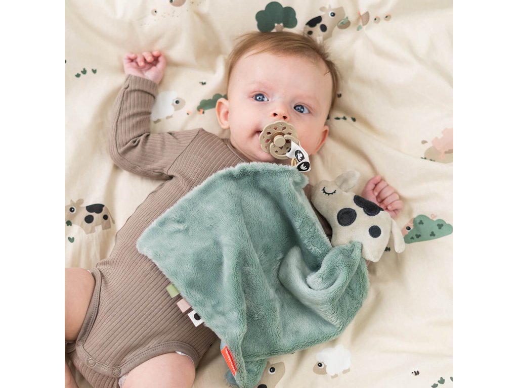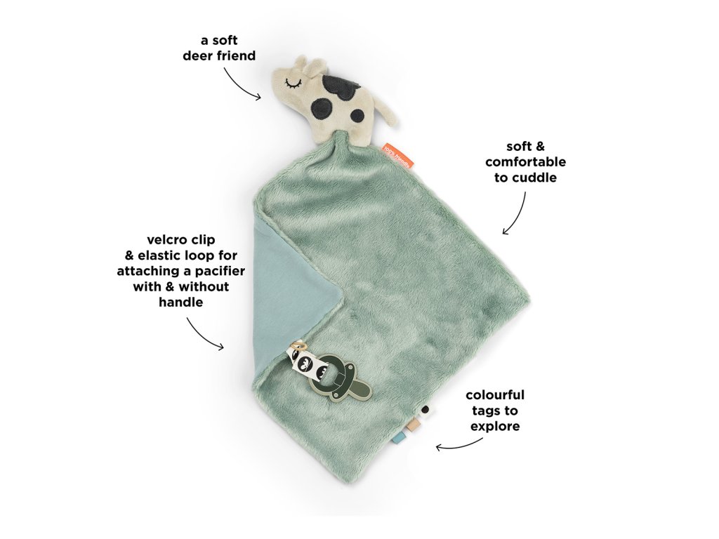 Mazlivá dečka Dotti se zábavnými štítky pro zvědavé malé prstíky a klipem na dudlík se zapínáním na suchý zip. Mazlíček má tu správnou velikost, aby ho děti mohly mít stále u sebe.