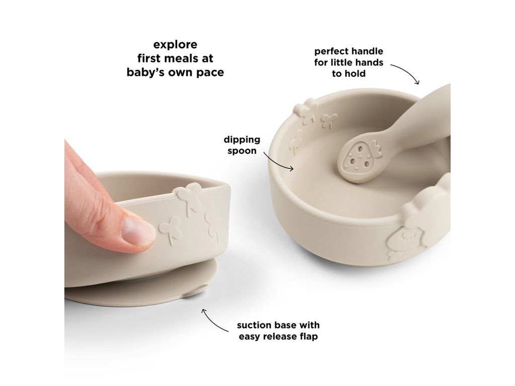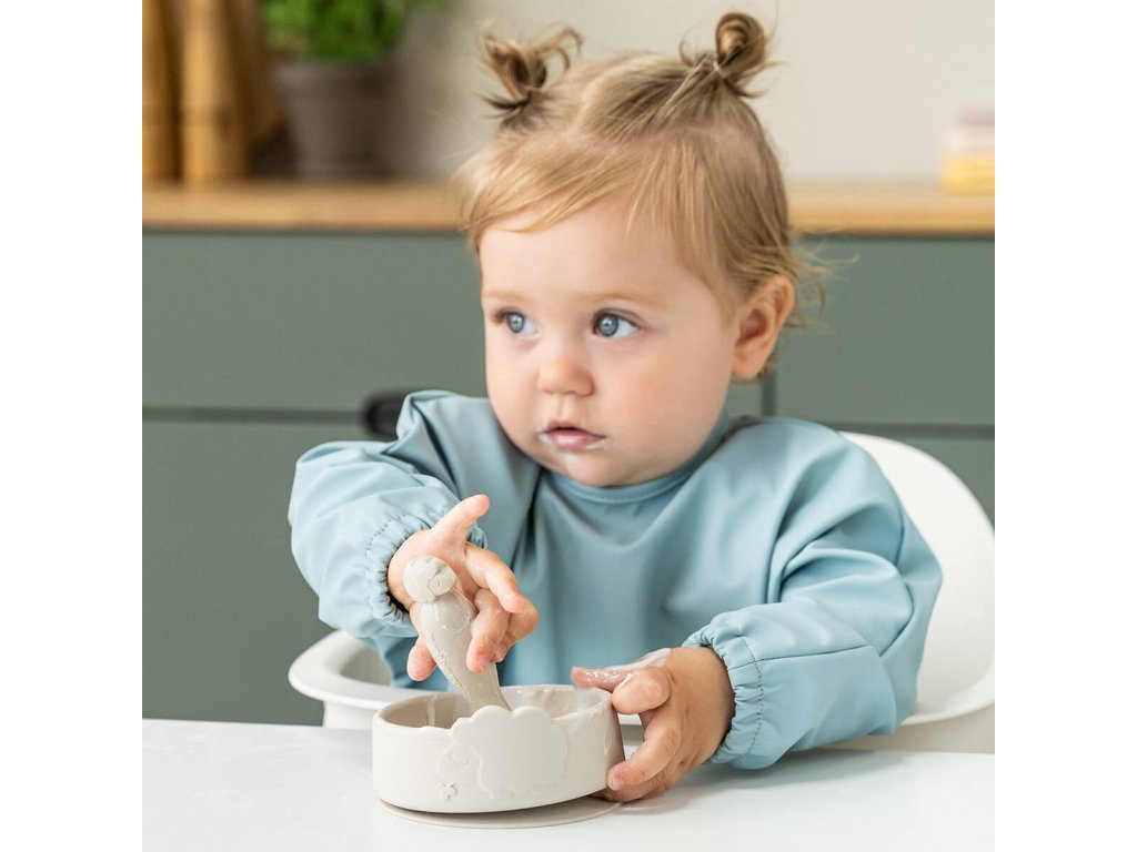 Silikonová Stick & Stay miska a lžička Sheepy - písková