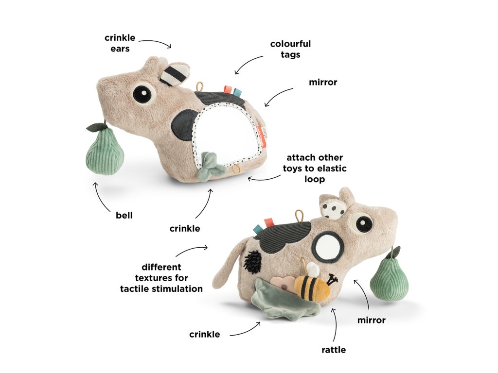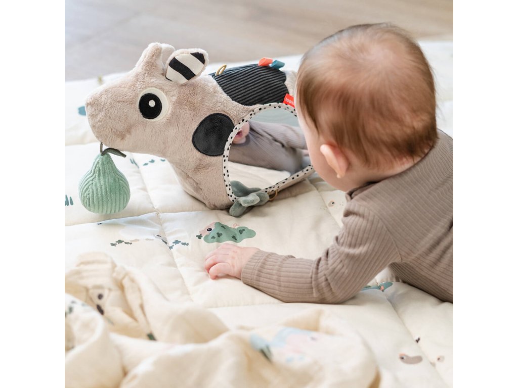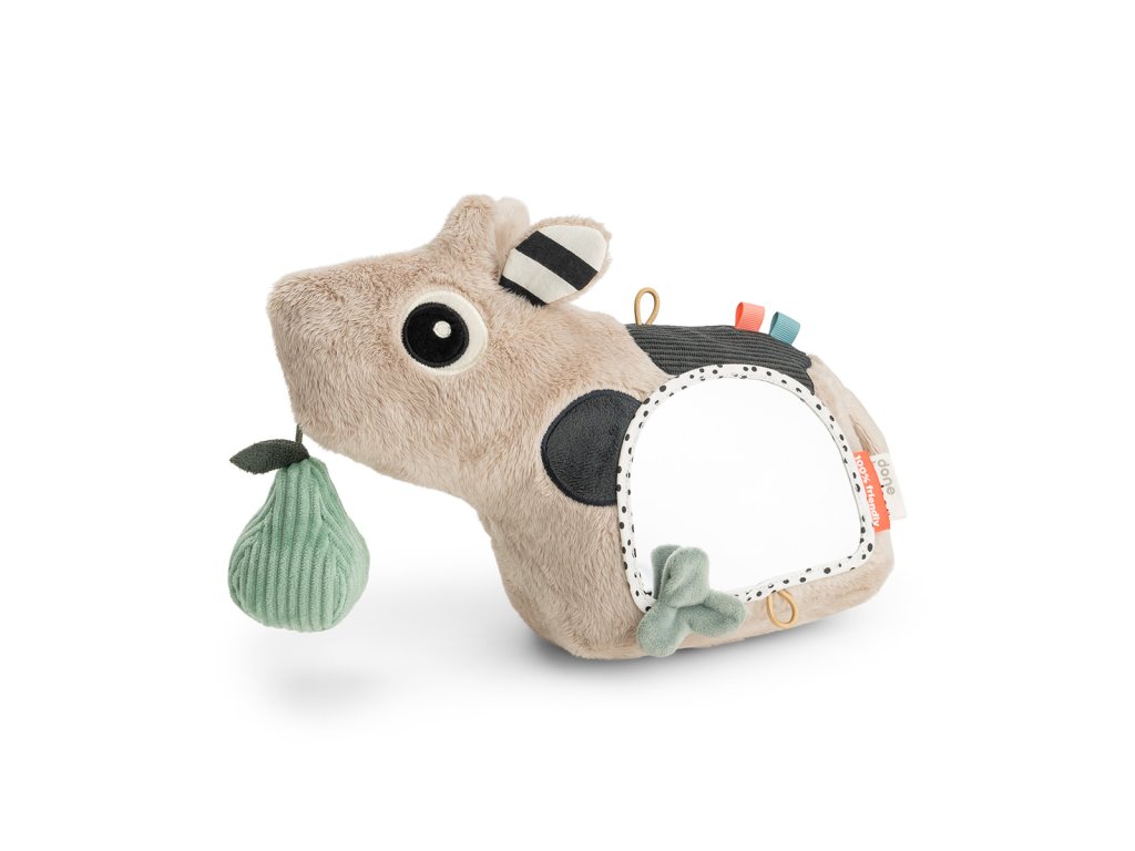 Malé děti baví jejich vlastní odraz, díky kterému je zrcadlo ideální pro povzbuzení trénování pozice na bříšku. Mnoho senzorických funkcí je povzbudí k delšímu a aktivnějšímu pobytu na břiše. Zrcadlo Dotti je navrženo se smyslovými aktivitami, jako jsou barevné štítky, hmatové textury, zvuky - je toho tolik, na co se dívat a zkoumat. Zrcadlo s výplní polyesterových vláken stojí pevně na podlaze a lze s ním snadno pohybovat.