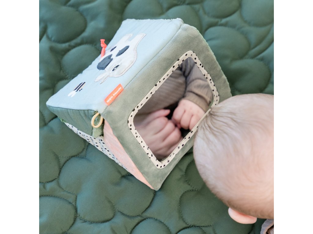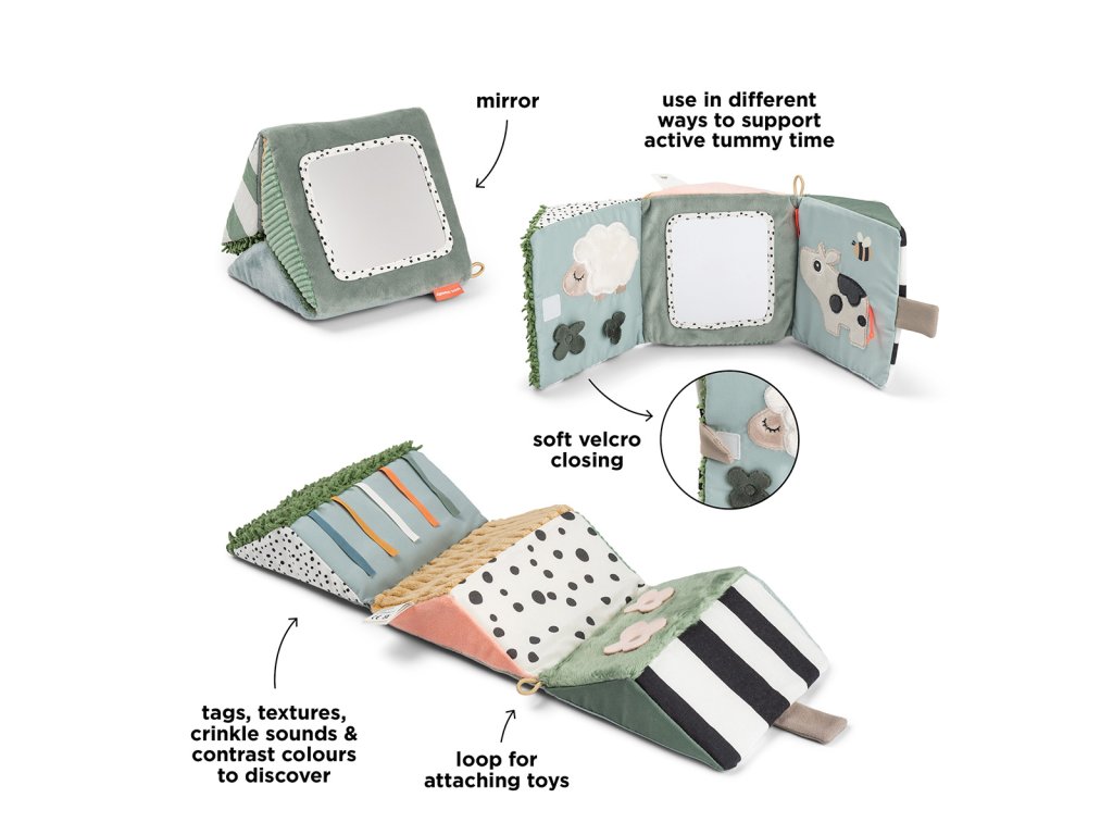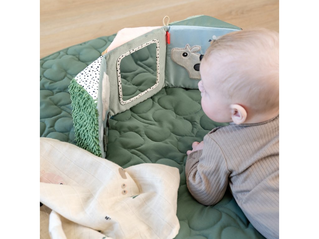 Rozkládací zrcátko je vyrobeno pro nejmenší, kteří se učí dívat se, natahovat se a prozkoumávat. Snadno se skládá, postaví nebo zavěsí, kdekoli si vaše dítě hraje. Podporuje vizuální a senzorickou stimulaci. Má hezké potisky, měkké textury a zrcátko. Určené nejen pro hraní na bříšku.