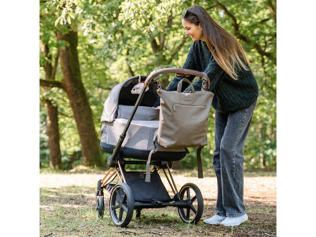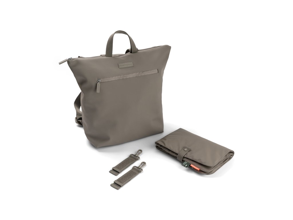 Součástí balení je praktická skládací přebalovací podložka s voděodolným povrchem a dva háčky na upevnění batohu na kočárek. Vodotěsné zipy i povrch činí batoh odolným vůči povětrnostním vlivům. Nastavitelné ramenní a hrudní popruhy usnadňují nošení batohu.