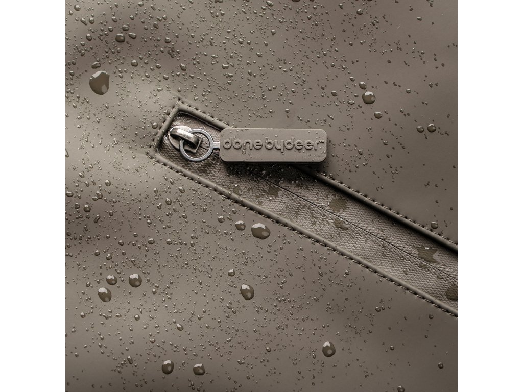 Přebalovací batoh Done by Deer kombinuje funkčnost, dlouhodobý design a udržitelnost. Při výrobě vnější textilie i vnitřního povrchu se recykluje 38 PET lahví.