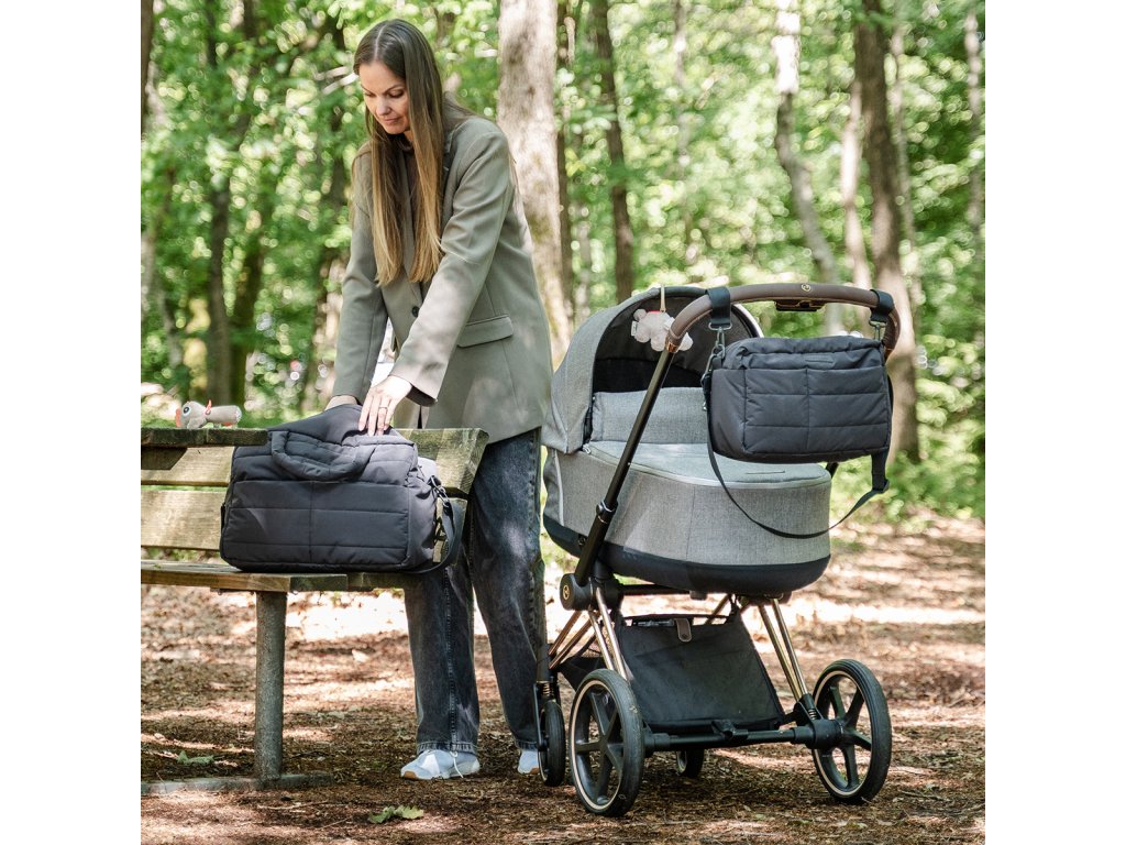Prošívaná taška na kočárek - černá