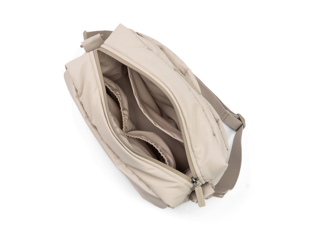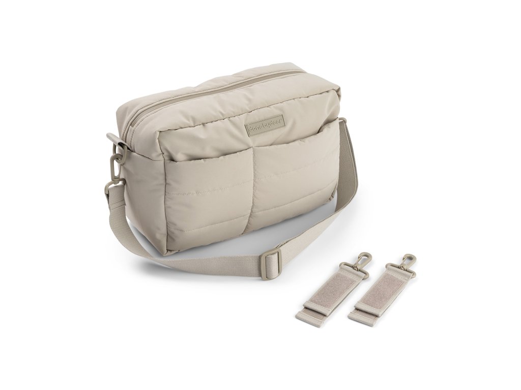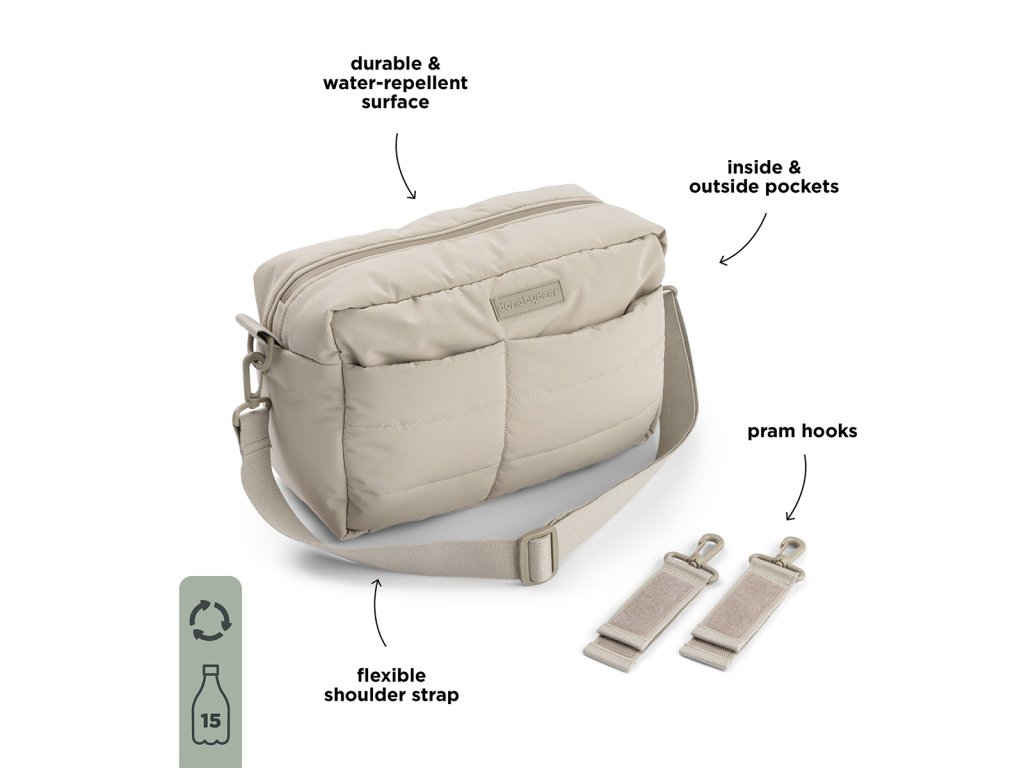 S touto cool prošívanou přebalovací taškou budete mít dostatek prostoru, abyste si vzali vše, co potřebujete pro své děťátko i pro sebe. Má kapsy na vnitřní i vnější straně. Povrch odolný vůči povětrnostním vlivům chrání vaše nezbytnosti před navlhnutím. Taška a přebalovací podložka jsou vyrobeny z recyklovaného polyesteru vyrobeného ze 15 použitých PET lahví. Poutka usnadňují připevnění tašky ke kočárku.