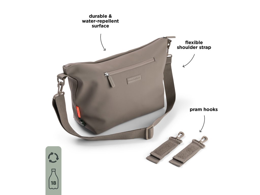 Tato taška na kočárek je praktický a stylový způsob, jak mít své nezbytnosti a nezbytnosti vašeho nejmenšího uspořádané a snadno dostupné. Bez námahy se připevňuje na madlo kočárku pomocí háčků na kočárek.