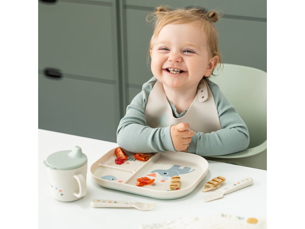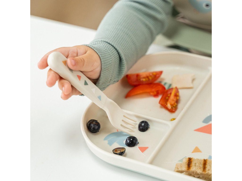 Sada příborů Foodie má měkké, zaoblené hrany, díky čemuž jsou bezpečné pro nejmenší, kteří si trénují jídlo sami. Příbory perfektně padnou do malých rukou a byly důkladně testovány dětmi. Roztomilá sada příborů pro miminka a batolata se skládá ze lžíce, vidličky a nože. Jakmile příbory doslouží svému účelu prostřednictvím bezpočtu rodinných večeří, lze je roztřídit jako plasty a recyklovat na nové produkty každodenního života. Krásná sada příborů rozzáří každé jídlo. Jeho hedvábně matný povrch ladí se zbytkem kolekce Foodie.