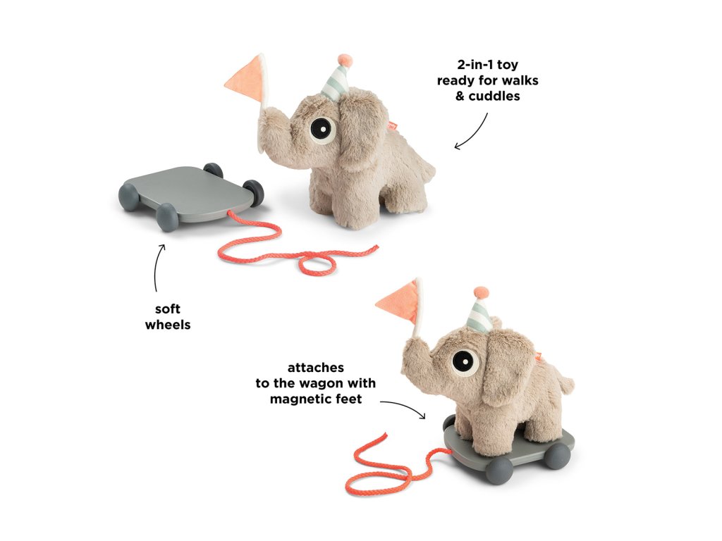 Sloník Elphee je oddaným a milujícím přítelem. Na kolečkách Vás může doprovázet kamkoliv. Elpheeho magnetické nožky jsou připevněny k magnetům ukrytým uvnitř vozíku. Od vozíku jej lze snadno oddělit. A tím váš drobeček bude mít kamaráda na mazlení.