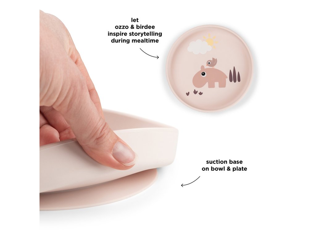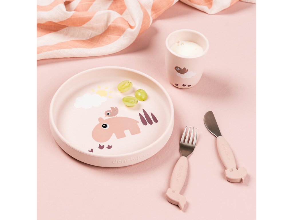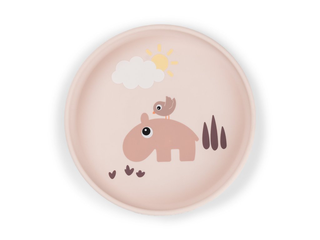 Jídelní talířek s hezkými obrázky. Přísavky na talíři udrží nádobí na místě během jídla. 100% potravinářský silikon bez obsahu BPA je bezpečný pro děti. Nádobí v jemných pudrových odstínech s vyraženými detaily roztomilých Deer friends. Perfektní dárek pro malé jedlíky.